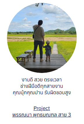 - ช่างฝีมือคุณภาพ: ลูกค้าคอนเฟิร์มว่าทีมงาน ตรงเวลา ทำงานตามสัญญา และ ใส่ใจรายละเอียดจนเสร็จสมบูรณ์