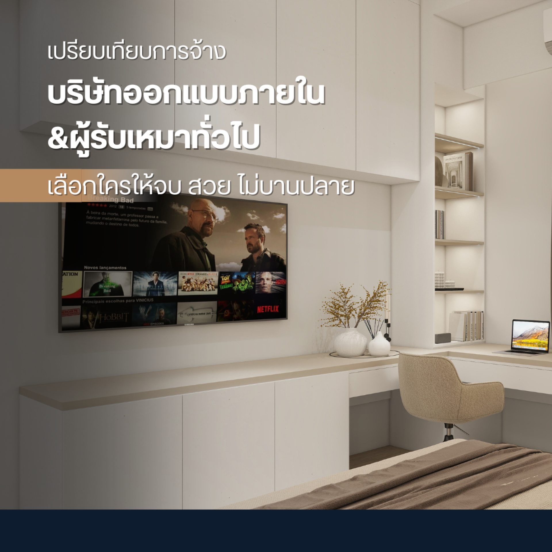 - บริษัทออกแบบภายใน: เนื่องจากเป็นผู้ออกแบบเอง เมื่อเจอปัญหาหน้างาน (เช่น ผนังจริงไม่ตรงตามแบบแปลนเดิม) พวกเขาสามารถ "คิด" และ "ปรับ" ดีไซน์หน้างานได้ทันที เพื่อให้ยังคงความสวยงามและฟังก์ชันไว้ได้ โดยไม่ต้องหยุดงานรอการตัดสินใจจากคุณ