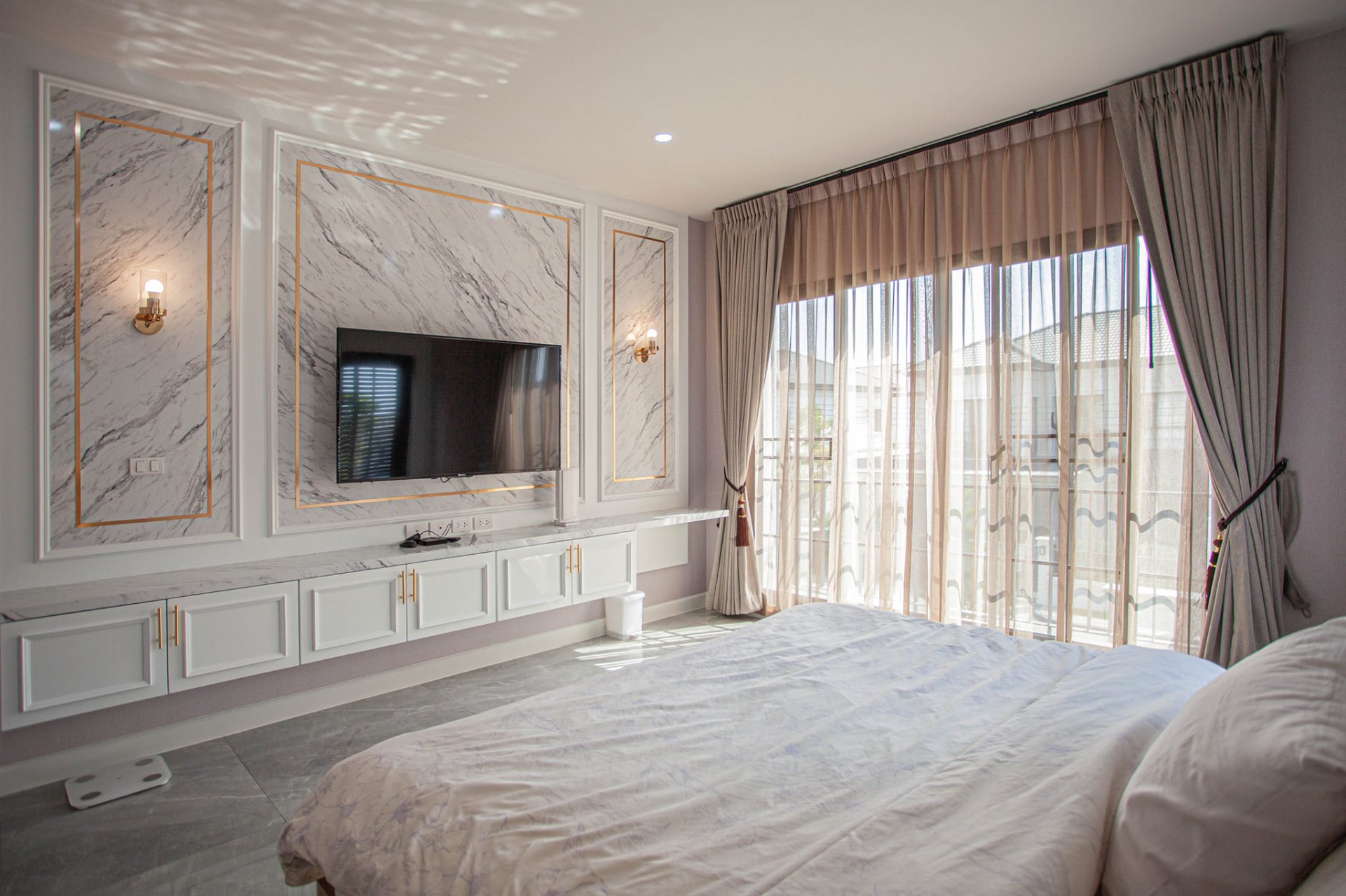 ห้องนอนคือพื้นที่ส่วนตัวที่เอาไว้ชาร์จพลังให้ตัวเอง เราออกแบบให้เต็มไปด้วยความผ่อนคลาย ด้วยโทนสีอบอุ่น แสงไฟนุ่ม ๆ และการจัดเฟอร์นิเจอร์ที่ทำให้ทุกมุมรู้สึกโล่งสบาย เป็นพื้นที่ที่คุณอยากกลับมานอนทุกคืน และตื่นขึ้นมาพร้อมรับวันใหม่อย่างสดชื่น