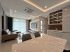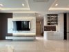 วัสดุหลักที่ใช้ ได้แก่ ไม้โครง ครูไม้ และงานปิดผิวลามิเนต ผสมผสานงานสีพ่นในบางส่วน ตกแต่งในสไตล์โมเดิร์น โทนสีขาว เทาอ่อน และแทรกวัสดุผิวเงา เพิ่มความสว่างให้กับพื้นที่ พร้อมเติมลูกเล่นด้วยอลูมิเนียมเพื่อเพิ่มความพรีเมียม